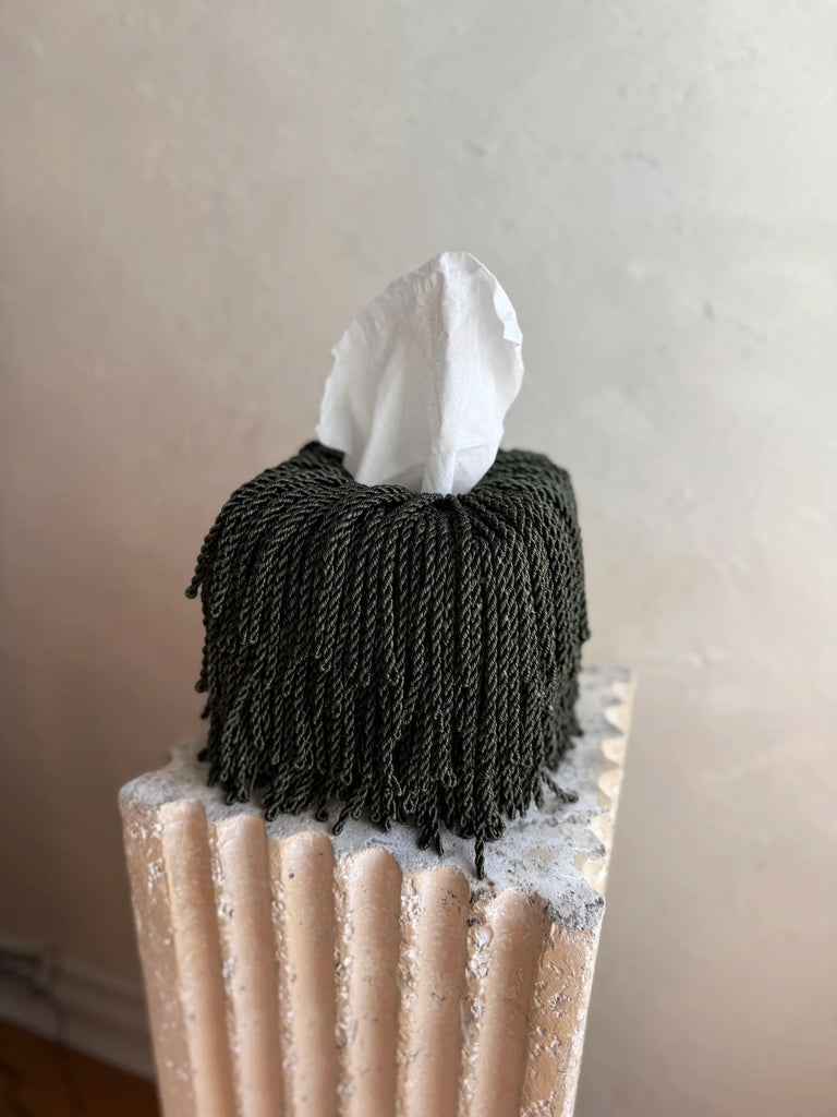 Elevate your space with a one-of-a-kind fringe tissue box cover—crafted to turn the everyday into art.