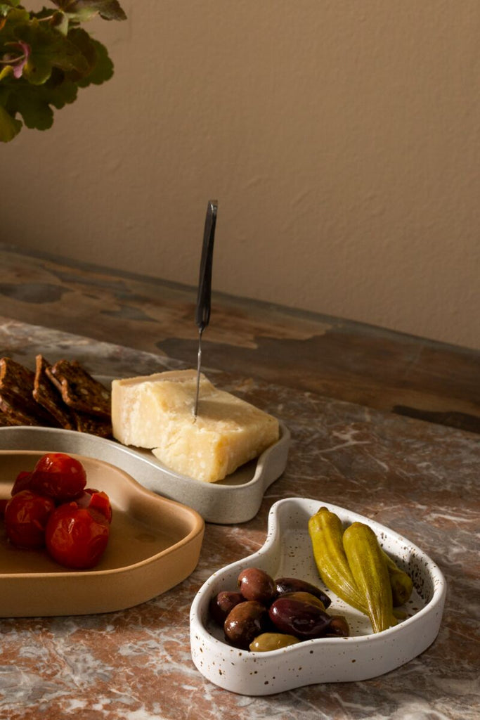 A small snack platter designed for serving treats or holding your favorite knick-knacks, the Kato Trays have a speckled glazed finish and can be mixed and matched for a unique and versatile style.