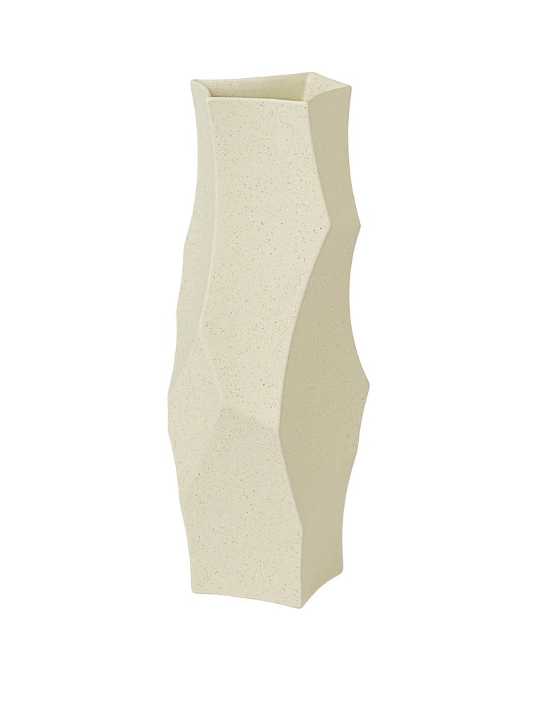 The Cueva Vase is a sculptural piece inspired by the natural beauty of cave formations. Its organic curves and textures create a unique and artistic form that adds character to any interior. Crafted from ceramic with a glazed finish, it combines a solid, substantial feel with a smooth, reflective surface, enhancing its visual appeal. Perfect as a standalone piece or for displaying flowers, it brings a touch of natural elegance to your home.