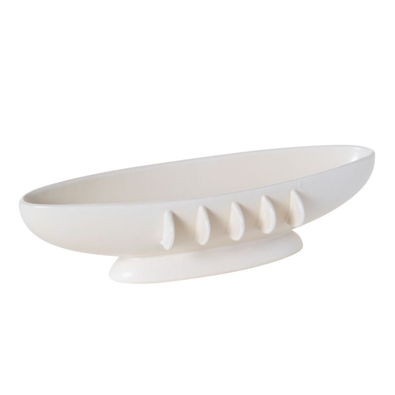 Hand-applied decorative tabs around the rim add interest to these ceramic pieces, whether used for simple branches, tropical stems, or a lavish flower arrangement. A reactive neutral glaze & semi-glossy finish protects the vase from moisture.