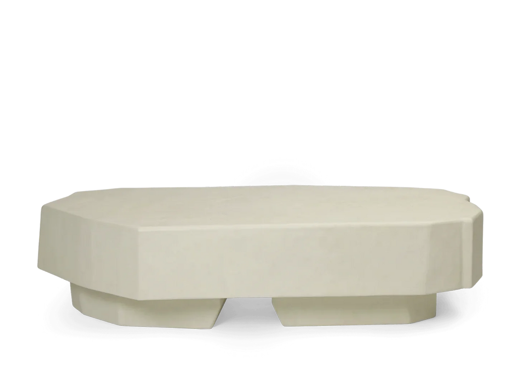 Drawing inspiration from Scotland's Staffa Island's distinctive volcanic rock formations, the Staffa Outdoor Coffee Table by Ferm Living honors its namesake, meaning "pillar" in Old Norse. Each piece is meticulously crafted from glass fiber-reinforced concrete, utilizing an innovative casting process to achieve a rugged, uneven shape reminiscent of carved stone blocks. Suitable for indoor and outdoor use, this table blurs the line between art and functionality, making it a captivating centerpiece for any living space or lounge area. Size: Width 70.1", Height 15.7", Depth 37.8"